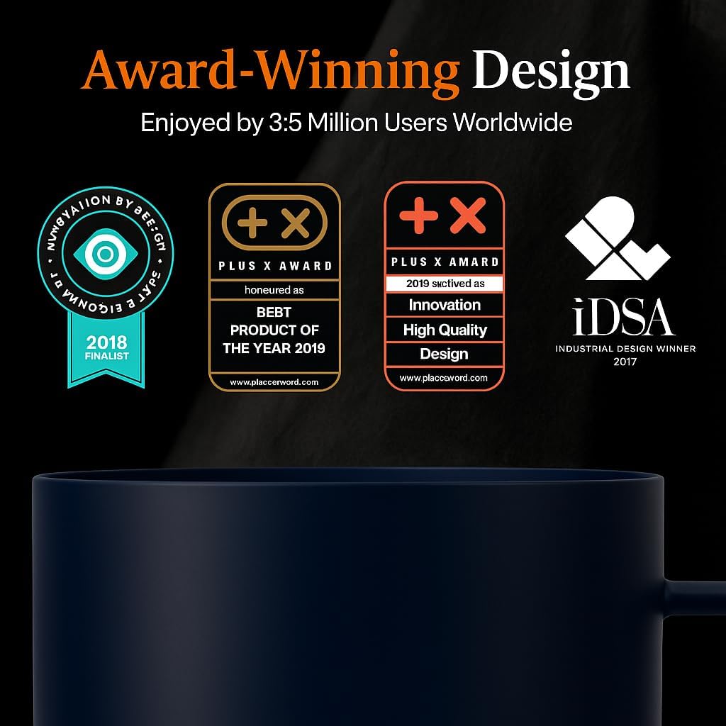 Ember Coffee Mug with Longer Lasting Battery: Our updated smart coffee mug’s extended battery life keeps your drink at your preferred temperature (between 120°F – 145°F) for up to 80 minutes on a full charge or all day on its redesigned charging coaster