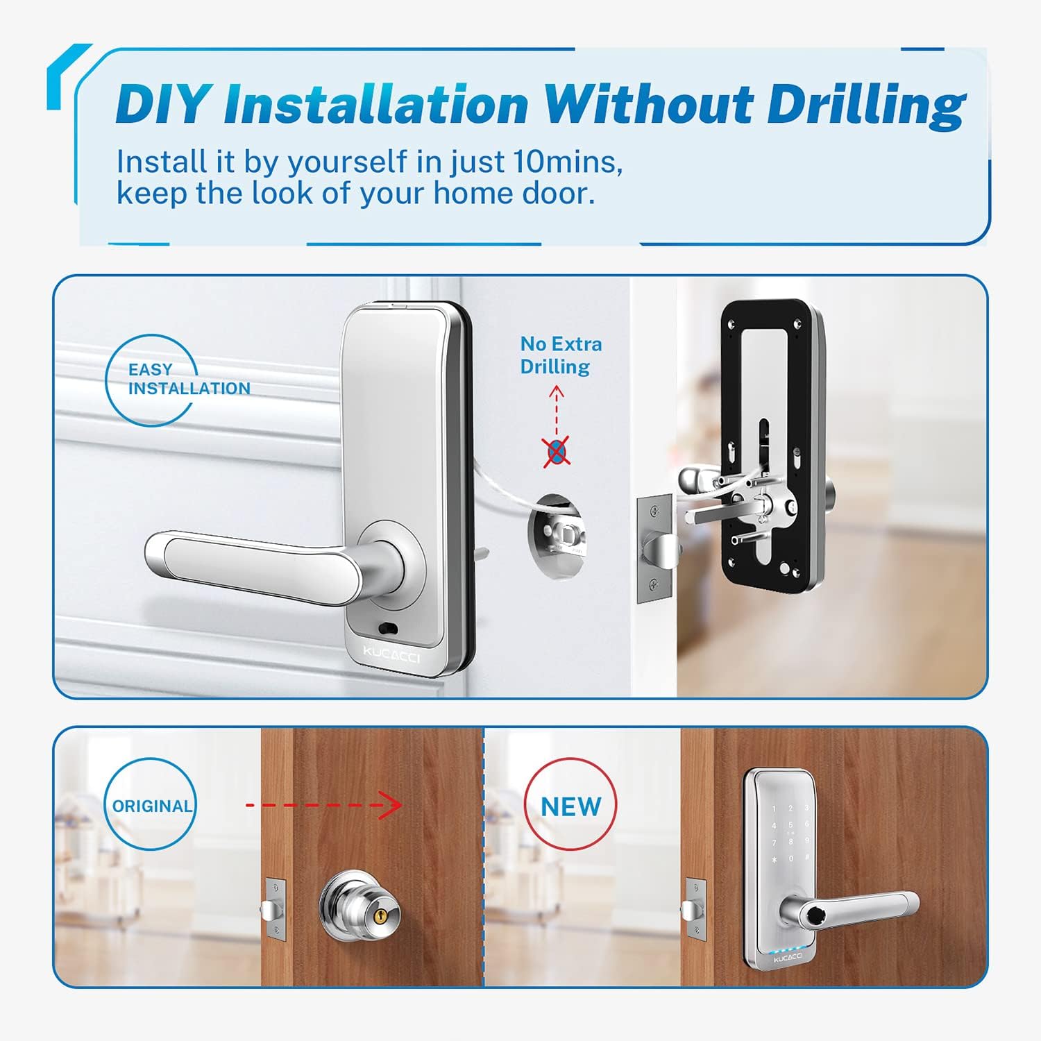 【Easy Installation】With Kucacci smart door lock, it can retrofit old door knob door lever or deadbolt lock easily in 5 mins, simple with a Philips screwdriver. No Extra Drilling Needed. No Locksmith Needed. Professional instructions and tutorial videos supported.
