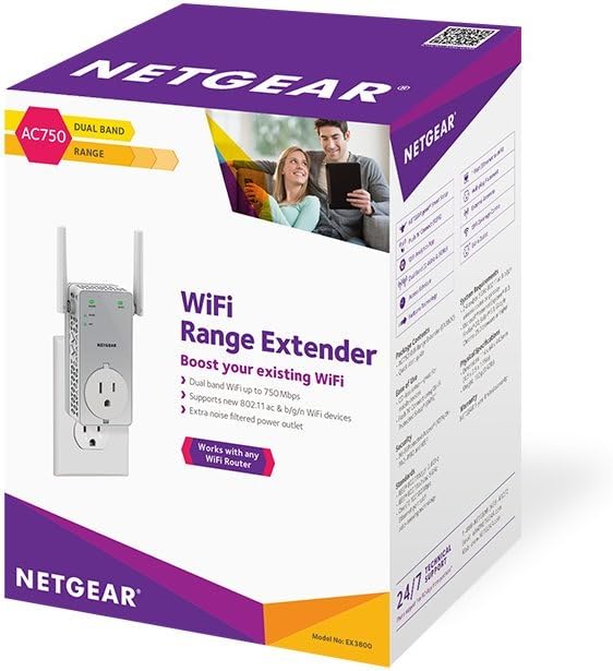 NETGEAR AC750 Wi-Fi Range Extender boosts your existing network range & speed, delivering AC dual band Wi-Fi up to 750 Mbps. It works with any standard Wi-Fi router & is ideal for HD video streaming & gaming. Extra noise-filtered outlet provides power for additional devices. Get the connectivity you need for iPads, smartphones, laptops & more.