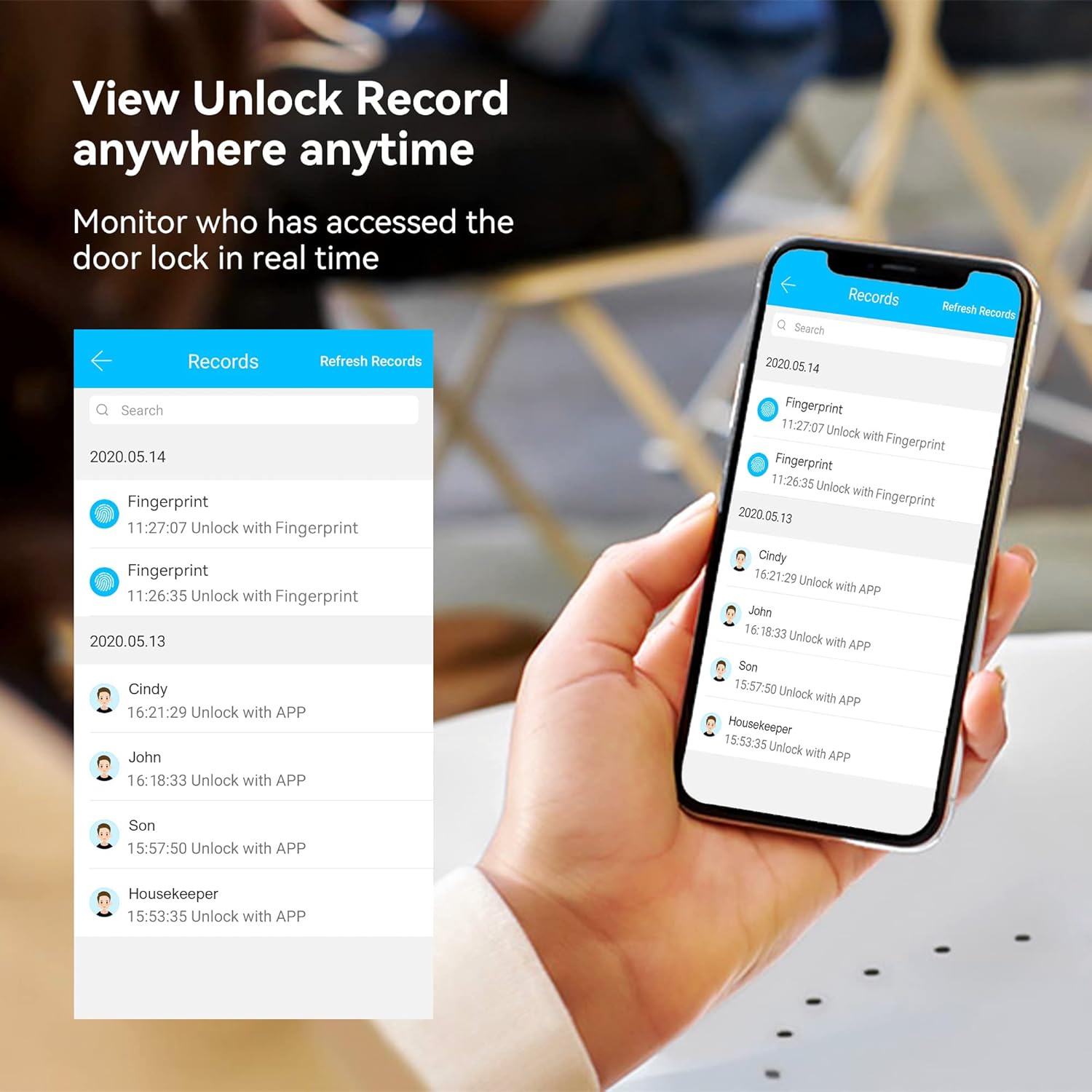 đăApp & Web Portal ControlăControl the smart lock via smartphone,remotely generate eKeys,manage users,and view access records using the free app and website management system,ensuring seamless control and management.