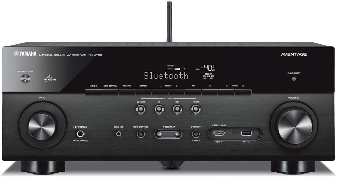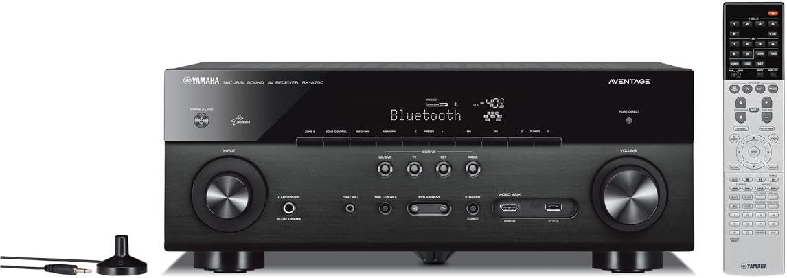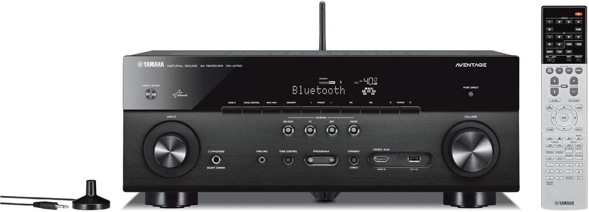 7.2-channel AVENTAGE network AV receiver is designed to provide high quality sound. Experience movies in stunning 4K Ultra HD with HDMI video upscaling and HDCP 2.2 support. Enjoy high-resolution audio playback and access to online music services with built-in Wi-Fi. Conveniently connect a smartphone or tablet with Bluetooth for quick access to your favorite music. Harness the flexibility of Party Mode and listen to music in different areas of your home with the convenient Yamaha AV Controller App.
